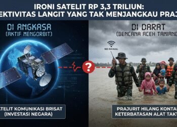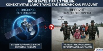 Read moreDetailsGambar: Ilustrasi visual yang menampilkan kontras tajam antara satelit komunikasi canggih yang mengorbit di luar angkasa dengan prajurit TNI yang...