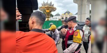 Read moreDetailsGambar: Seorang petugas kepolisian dari Satgas Preventif Polda Sumsel yang mengenakan rompi dinas tampak sedang melakukan pemeriksaan dan penertiban terhadap...