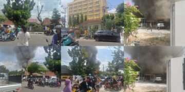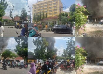 Read moreDetailsGambar: Asap hitam tebal membubung tinggi akibat kebakaran yang melanda kompleks asrama polisi di Jalan Sisingamangaraja, Pekanbaru. Tampak sejumlah warga...