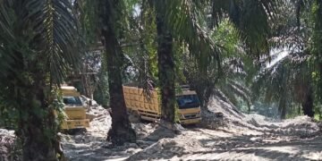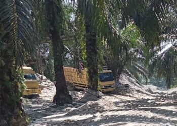 Read moreDetailsGambar: Dua unit truk jungkit (dump truck) berwarna kuning terlihat sedang beroperasi dan antre di area pertambangan pasir (galian C)...