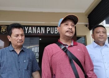 Read moreDetailsGambar: Rizal (tengah), terlapor kasus dugaan penganiayaan yang penyelidikannya dihentikan, memberikan keterangan kepada awak media didampingi kuasa hukum dan pejabat...