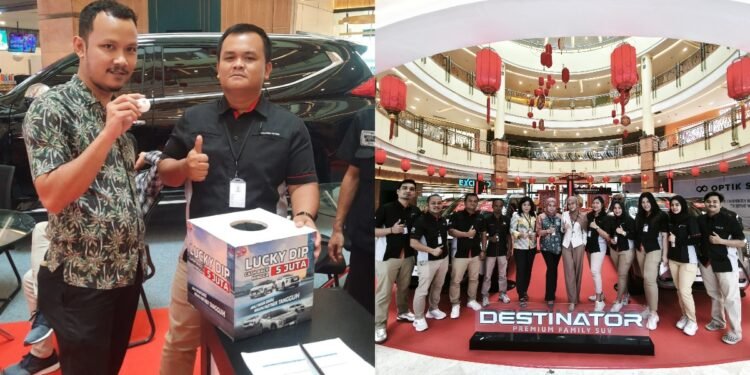 Read moreDetailsGambar: Kolase foto suasana pameran Mitsubishi Motors Large Auto Show di Mal SKA Pekanbaru. Sisi kiri menampilkan seorang pria memegang...