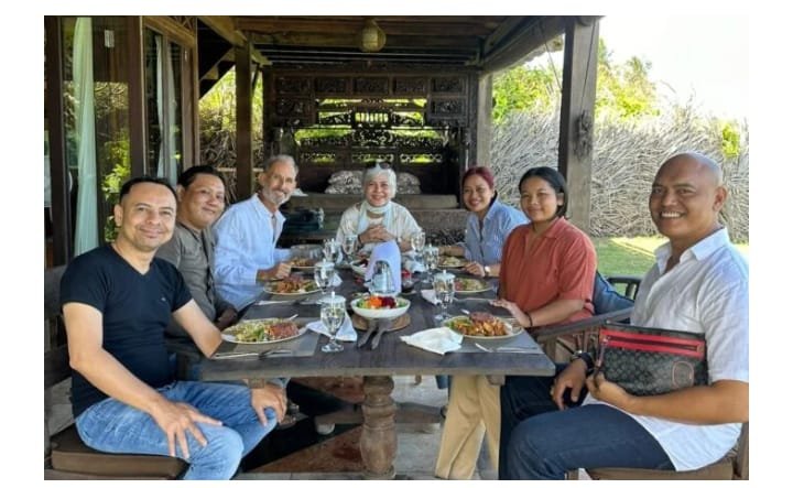Gambar: Suasana pertemuan hangat Arief Martha Rahadyan bersama Ketua DPW Setya Kita Pancasila (SKP) Bali, I Gede Oka Suanda Yudara, beserta jajaran pengurus dan tokoh masyarakat lainnya dalam sebuah jamuan makan siang di Bali untuk membahas penguatan nilai kebangsaan.