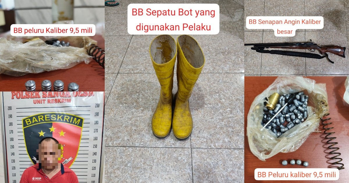 Kedua terduga pelaku masing-masing berinisial M.P. (44), seorang Pegawai Negeri Sipil (PNS), dan T.H. (16), seorang pelajar. Dari tangan mereka, petugas turut mengamankan barang bukti berupa satu pucuk senapan angin, satu kantong amunisi, dan sepasang sepatu bot yang diduga digunakan saat kejadian.