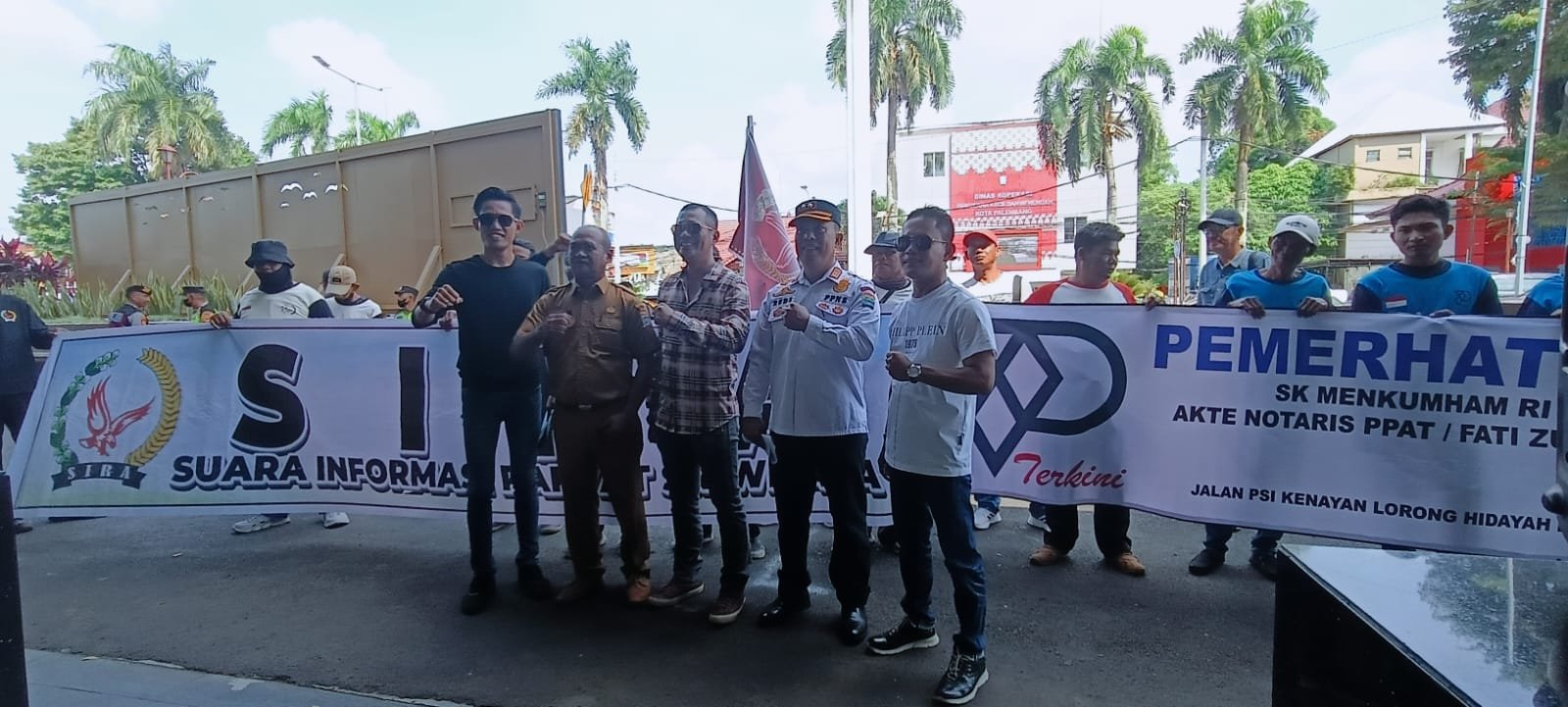LSM SIRA dipimpin oleh Rahmat Sandi Ikbal, SH, didampingi Sekretaris Jenderal Rahmat Hidayat, SE. Sementara LSM PST dikomandoi oleh Dian HS dengan Sekretaris Sukirman. Puluhan massa turut hadir menyuarakan tuntutan kepada Pemerintah Kota Palembang.