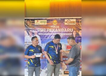Read moreDetailsGambar: Perwakilan atlet biliar dari PWI Dumai, Rahmat (tengah), menerima pengalungan medali Juara III pada ajang PWI Pekanbaru Billiard Championship...