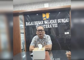 Read moreDetailsGambar: Humas BBWS Sumatera VIII, Nando, saat memberikan keterangan pers terkait kondisi debit air Sungai Musi yang masih normal di...