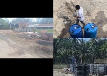 Read moreDetailsGambar: Dokumentasi tim investigasi menunjukkan kondisi lapangan di Desa Sungai Ara yang diduga menjadi lokasi aktivitas bongkar muat limbah berbahaya,...