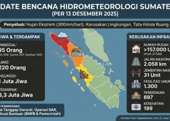 Read moreDetailsGambar: Sebuah infografis menyajikan data pembaruan bencana hidrometeorologi di Sumatera per 13 Desember 2025. Visual ini menampilkan peta Pulau Sumatera...