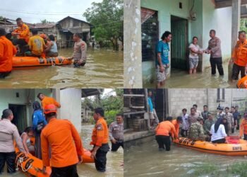Read moreDetailsGambar: Personel Polsek Bangkinang Barat bersama tim penanggulangan bencana menggunakan perahu karet berlogo BNPB untuk mengevakuasi dan membantu warga yang...