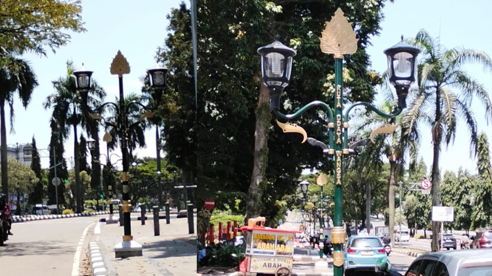 Sepanjang bahu jalan di kiri dan kanan, lampu penerangan jalan dipasang dengan rapi. Setiap tiang lampu dilengkapi dua lampu kristal yang elegan, sementara badan tiang bertuliskan “Kuta Udaya Wangsa”. Di bagian atasnya, terdapat replika mahkota Binokasih yang menjadi ikon khas, semakin mempercantik panorama dan memperkuat identitas Kota Bogor sebagai kota bersejarah.
