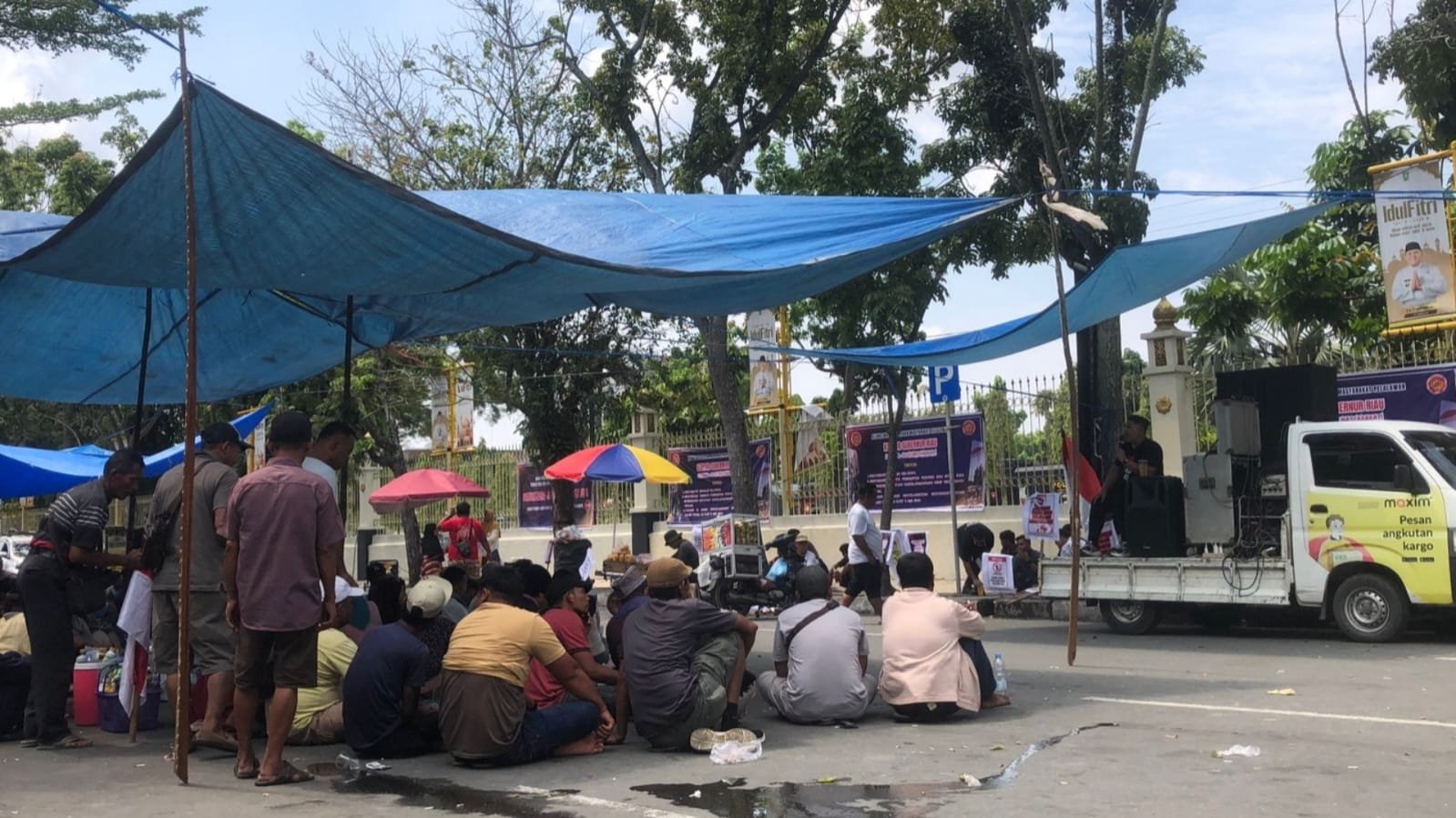 Demo Hari Kedua Masyarakat TNTN Pelalawan: Gantungkan Brondolan Sawit di Kantor Gubernur Riau