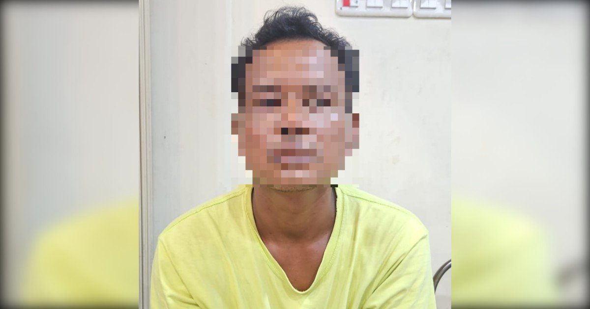 Gambar: Seorang pria mengenakan kaos kuning tertangkap kamera dengan wajah yang diblur untuk melindungi identitas. Pelaku pembunuhan berinisial IR (45) yang berhasil diamankan Tim Jatanras Polda Sumsel di Muaro Jambi setelah melarikan diri pascapenusukan yang menewaskan tetangganya di Baturaja Timur, OKU, kini menjalani pemeriksaan intensif untuk proses penyidikan lebih lanjut.