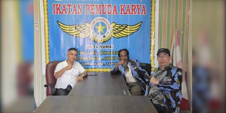 Dumai (Utusan Rakyat) – Pertemuan strategis berlangsung di Sekretariat Ikatan Pemuda Karya (IPK) Kota Dumai antara Herwin M.T. Sagala dengan jajaran pimpinan IPK Dumai. Herwin M.T. Sagala hadir selaku Ketua Generasi Sosial Peduli Indonesia (GSPI) Dewan Pimpinan Daerah (DPD) Provinsi Riau sekaligus Koordinator Wilayah (Korwil) GSPI Indonesia Barat, dan disambut langsung oleh Ketua IPK Dumai, Patrik Tatang, beserta Wakil Ketua IPK Dumai, Kamartian, yang akrab disapa Tyas A.G. Pertemuan ini tidak sekadar silaturahmi, tetapi juga menjadi forum kajian peran organisasi kemasyarakatan dalam mendukung penguatan keamanan nasional dan pelestarian adat Melayu di Kota Dumai.