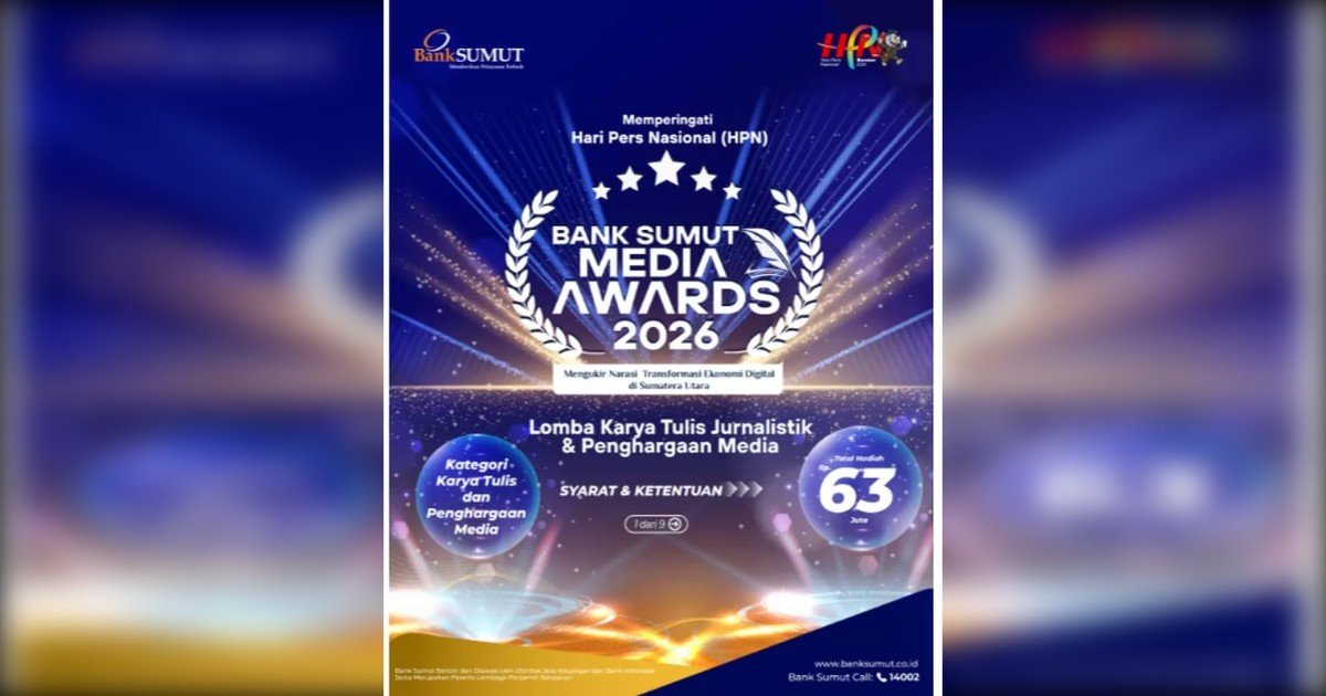 Informasi lengkap pelaksanaan Bank Sumut Media Award 2026 dapat diakses melalui www.banksumut.co.id dan media sosial bank sumut. Dengan batas waktu pengiriman karya dan persyaratan administrasi paling lambat 3 Februari 2026. Hasil kompetisi akan diumumkan pada 7 Februari 2026 dan diikuti penyerahan hadiah pada 9 Februari 2026 bertepatan dengan Peringatan Hari Pers Nasional (HPN).
