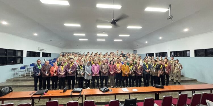 Gambar: Foto bersama seluruh Sekda Kabupaten/Kota Provinsi Sumsel, Kepala Bappeda, dan Praja IPDN asal Sumsel di Ruang Kelas Padjajaran Kampus IPDN Jatinangor, Sumedang, Jawa Barat, pada Selasa malam (28/10/2025).