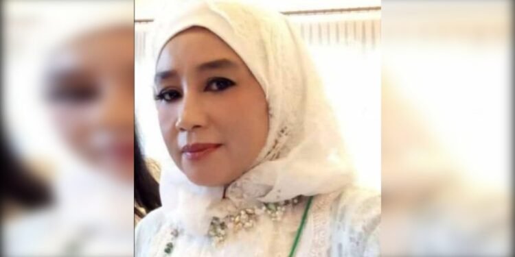 Gambar: Nyimas Choiriyah Halim, Kepala Perwakilan Wilayah Utusan Rakyat Provinsi Sumatera Selatan, tampil anggun mengenakan busana muslim dan hijab berwarna putih dengan aksen renda serta kalung manik-manik, menyampaikan pesan refleksi Isra Miraj 2026 sebagai momentum penguatan iman dan keteladanan dalam kehidupan modern.