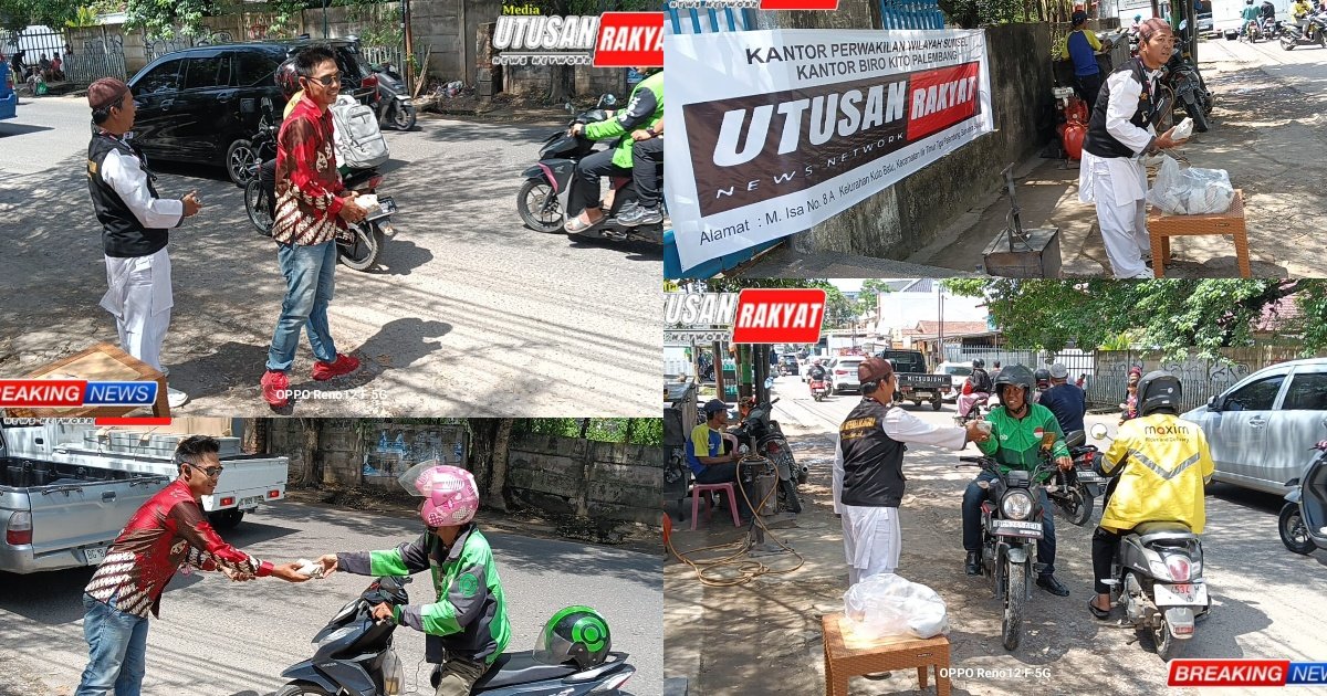 Palembang (Utusan Rakyat) – Media Utusan Rakyat Perwakilan Sumatera Selatan Biro Kota Palembang kembali melakukan kegiatan sosial “Jumat Barokah” dengan membagikan makanan di depan kantor yang beralamat di Jalan M. Isa pada Jumat, 3 Oktober 2025. Kegiatan mulia ini ditujukan bagi kaum duafa dan pengemudi ojek online (ojol).
