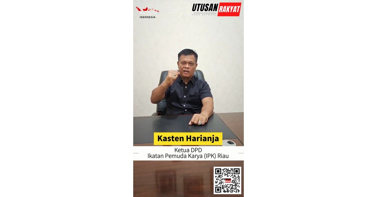 Gambar: Kasten Harianja, Ketua DPD Ikatan Pemuda Karya (IPK) Riau, yang duduk di belakang meja dengan ekspresi bersemangat.