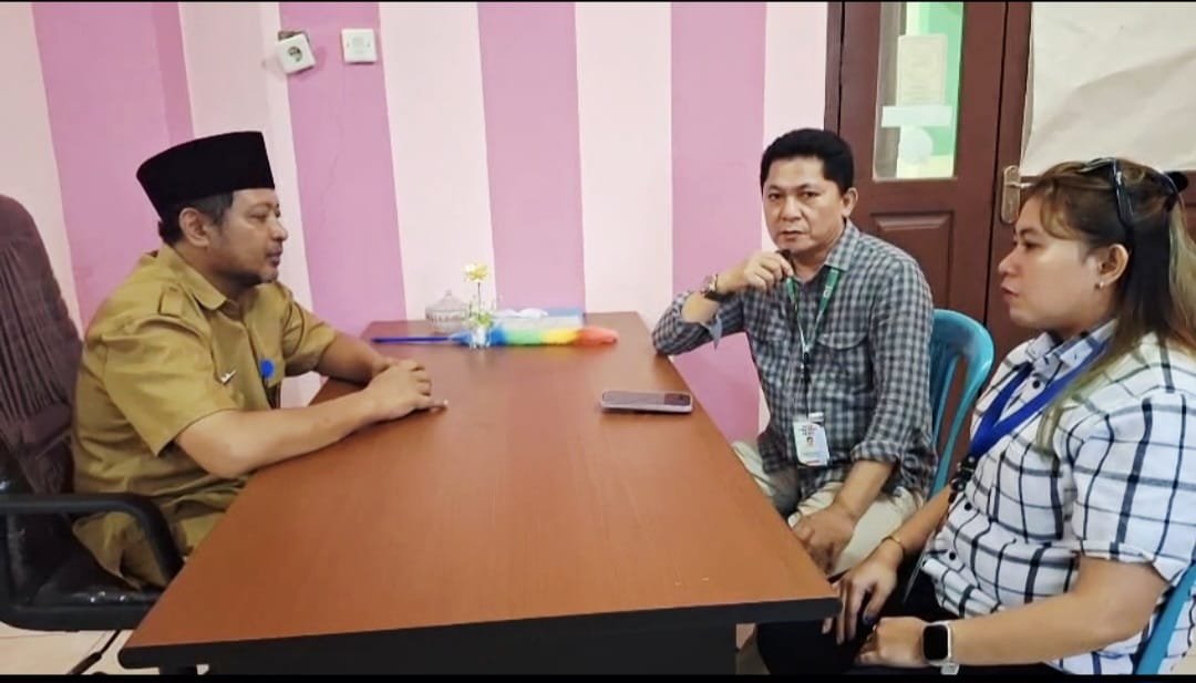 Gambar: Kepala Puskesmas Kotabunan, Dewa M. (kiri), saat diwawancarai oleh awak media di ruang kerjanya yang berlatar dinding garis-garis merah muda, memberikan klarifikasi terkait isu pelayanan kesehatan dan penggunaan kendaraan dinas.