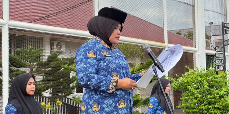 Gambar: Kepala Lapas Perempuan Kelas IIB Sigli, Yuliana, saat bertindak sebagai inspektur upacara dan membacakan amanat dalam peringatan Hari Pahlawan tahun 2025. Upacara yang dihadiri oleh petugas dan warga binaan ini bertujuan untuk meneguhkan kembali semangat nasionalisme dan meneladani perjuangan para pahlawan.