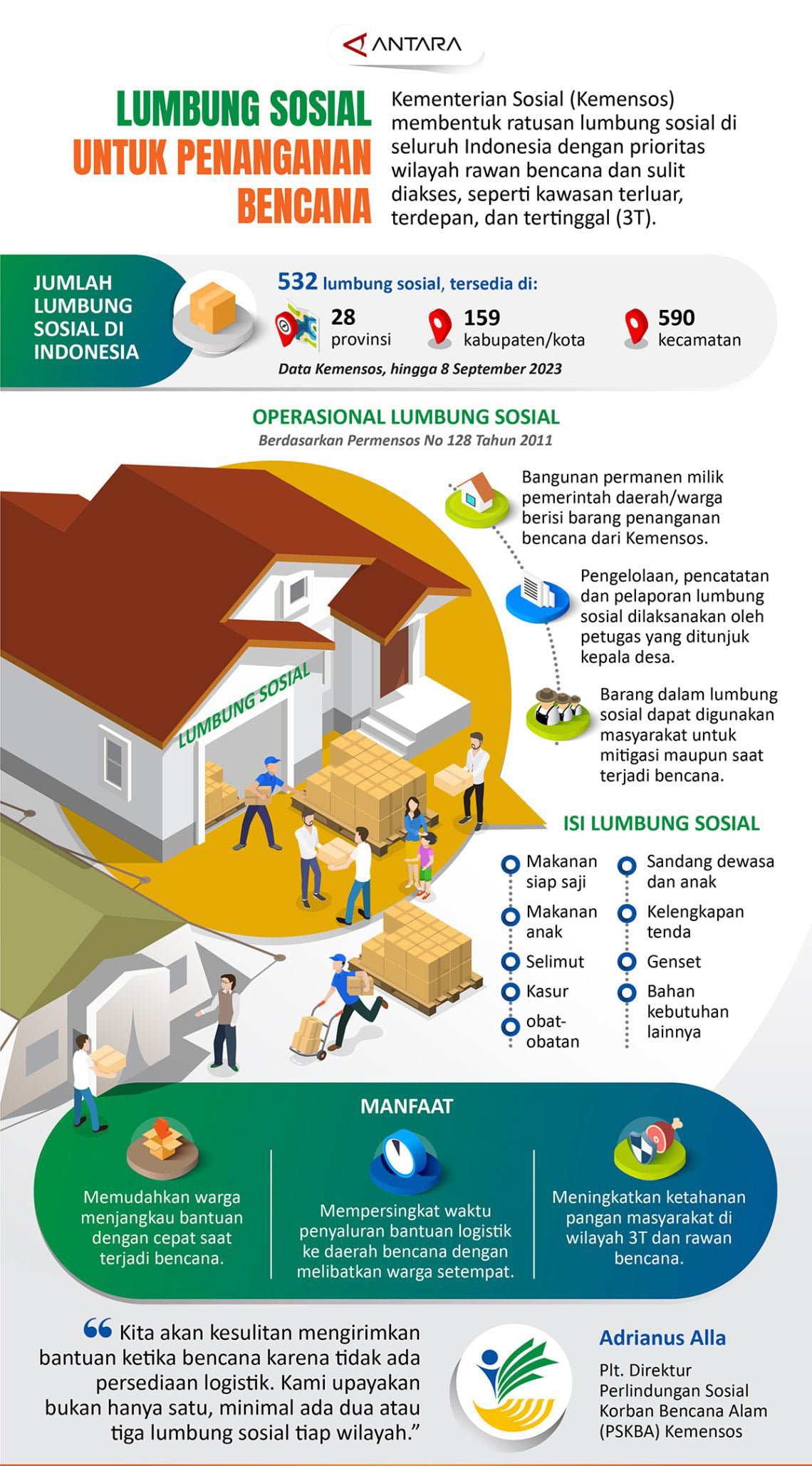 Utusan Rakyat – Kementerian Sosial (Kemensos) membentuk ratusan lumbung sosial di seluruh Indonesia dengan prioritas wilayah rawan bencana dan sulit diakses, seperti kawasan terluar, terdepan, dan tertinggal (3T).