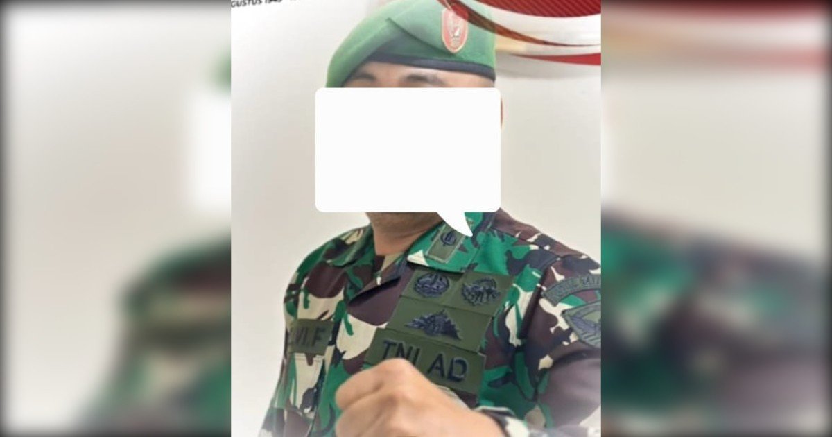Gambar: Sosok pria berseragam TNI AD yang wajahnya disensor dengan balok putih. Pria tersebut diduga merupakan oknum anggota Kodim 0417/Kerinci berinisial DF yang dilaporkan atas dugaan tindak pidana pemalsuan dokumen.