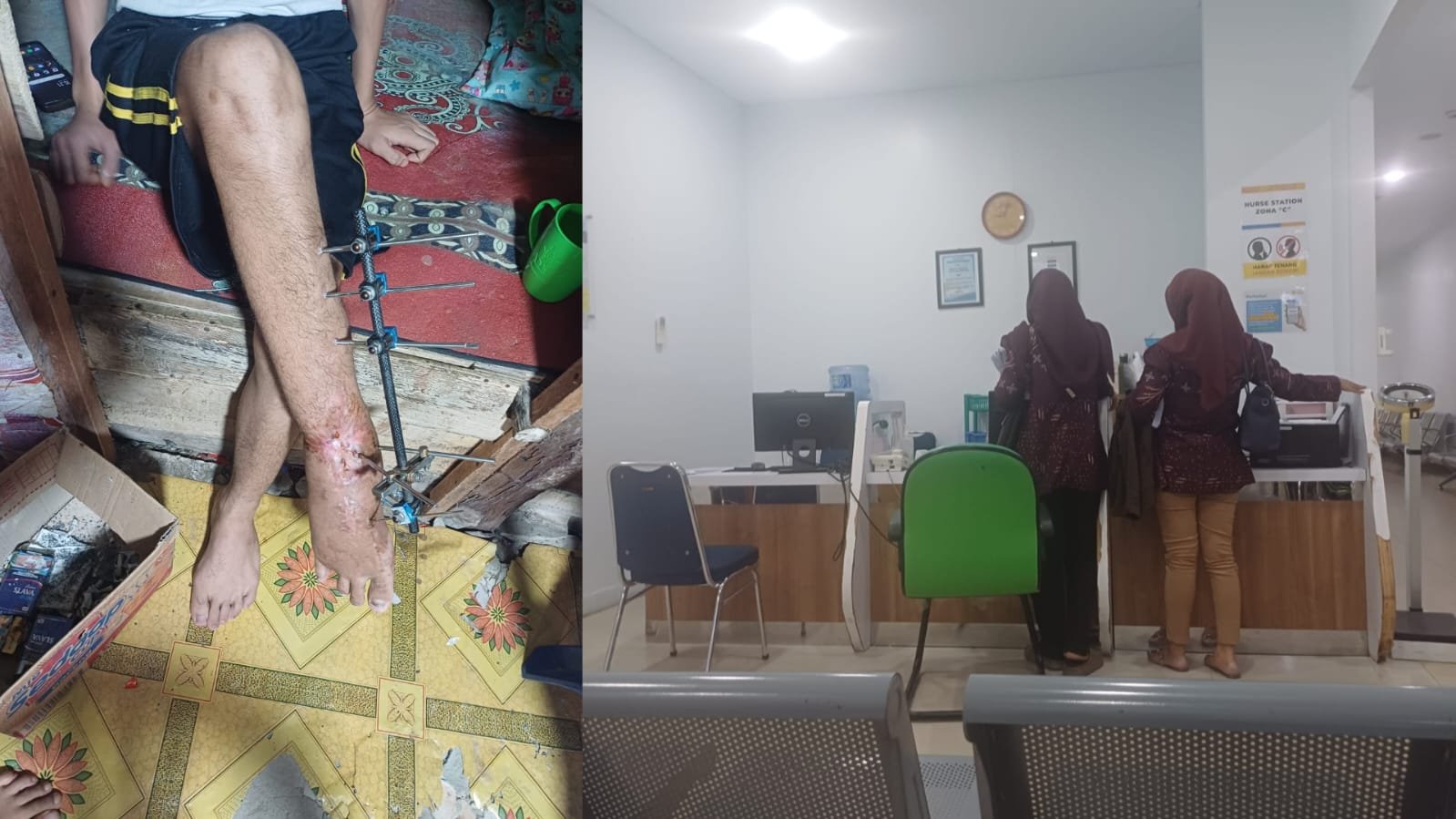 Gambar: Memperlihatkan kontras antara kondisi fisik pasien yang membutuhkan penanganan medis segera dengan situasi administratif di Rumah Sakit (RS) Prima Pekanbaru. Visual ini terdiri dari dua bagian yang saling berkaitan: