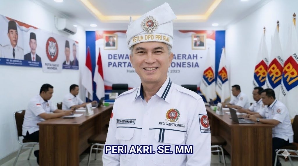 Gambar: Menampilkan profil Peri Akri, SE. MM, tokoh politik yang secara resmi ditunjuk oleh Dewan Pimpinan Pusat (DPP) Partai Rakyat Indonesia (PRI) sebagai Ketua Dewan Pimpinan Daerah (DPD) Provinsi Riau. Penugasan strategis ini tertuang dalam Surat Tugas DPP PRI Nomor 247/ST.DPD/INT/DPP-PRI/IV/2026.