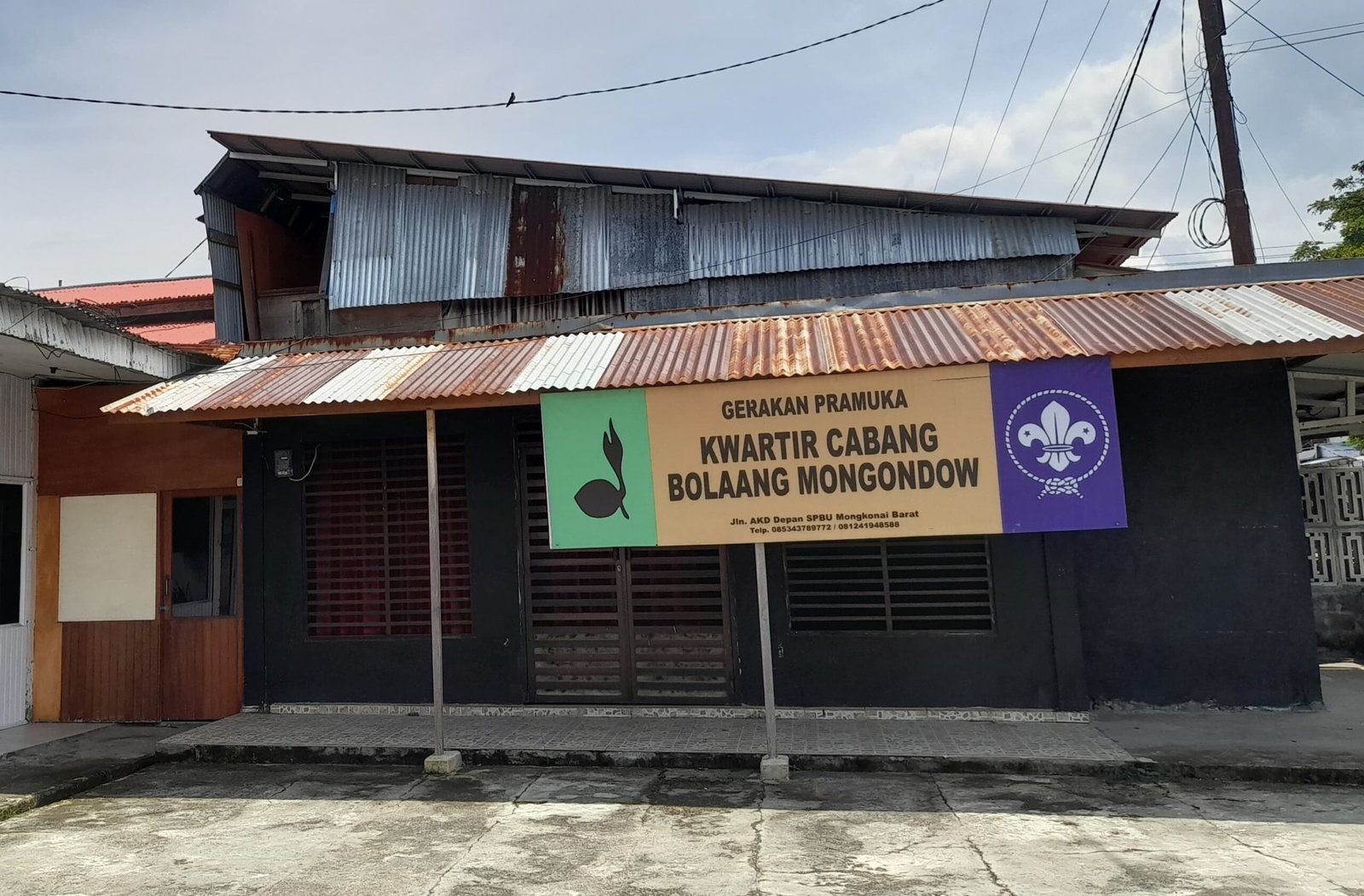 Tampak depan kantor Kwartir Cabang Kwarcab Gerakan Pramuka Bolaang Mongondow Penanganan dugaan kasus penyalahgunaan dana hibah di lembaga ini menuai sorotan dari publik dan pegiat sosial karena dinilai berjalan lambat