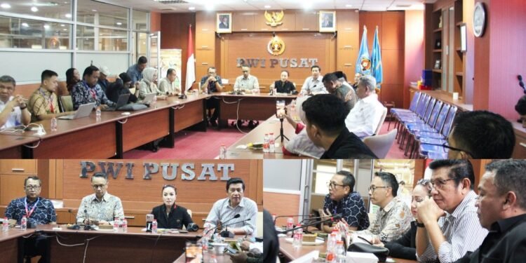 Gambar: Suasana sosialisasi program kepemilikan rumah subsidi bagi wartawan yang berlangsung di Sekretariat PWI Pusat, Jakarta. Tampak jajaran pengurus PWI Pusat bersama perwakilan BP Tapera dan Bank BTN berdiskusi mengenai teknis akses pembiayaan perumahan yang terjangkau bagi para jurnalis.