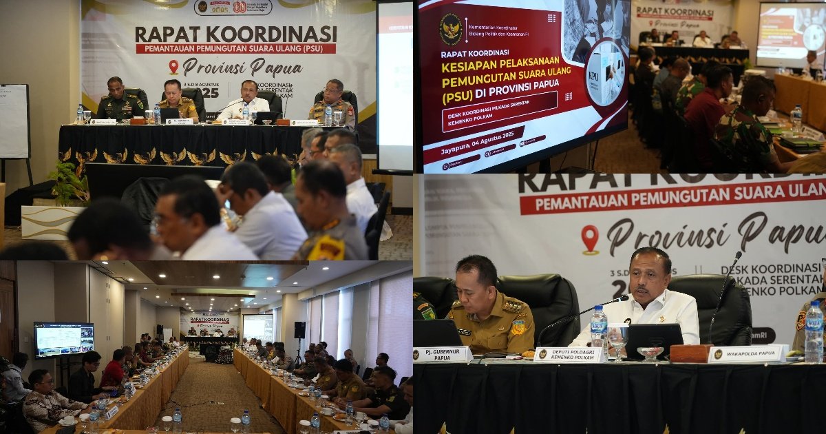 Penegasan ini disampaikan dalam konferensi pers di Jayapura, oleh Deputi Bidang Koordinasi Politik Dalam Negeri, Mayjen TNI Heri Wiranto, usai Rapat Koordinasi Kesiapan PSU Papua yang digelar atas arahan Menko Polkam Budi Gunawan, Senin (4/8/2025).