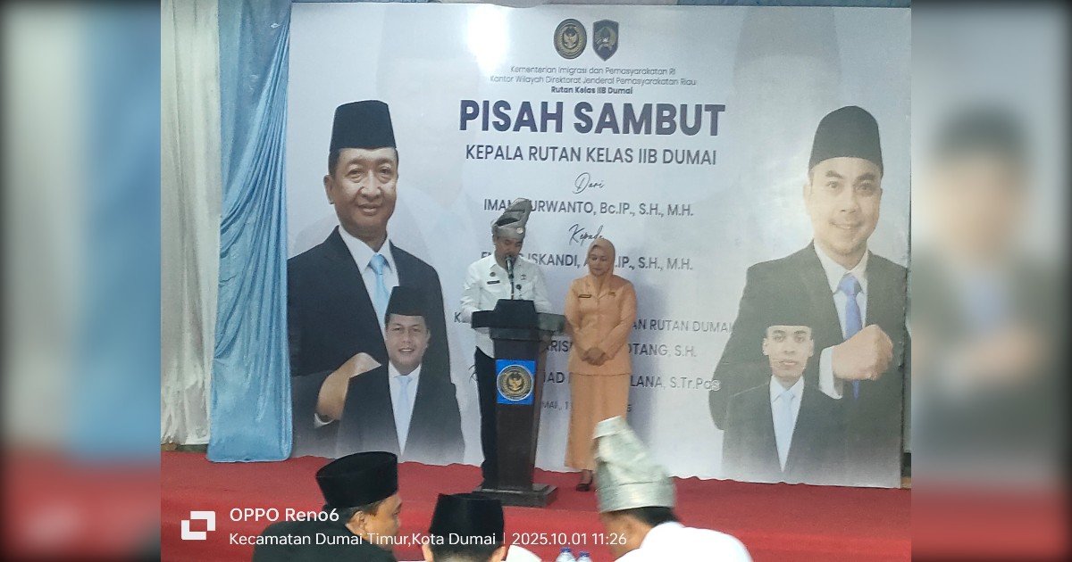 DUMAI (Utusan Rakyat) – Setelah jabatan Kepala Rumah Tahanan Negara (Rutan) Kelas IIB Dumai resmi berganti pada Senin (29/9) di Kantor Wilayah Direktorat Jenderal Pemasyarakatan (Ditjenpas) Riau, Rutan Dumai kini menggelar acara pisah sambut pucuk pimpinan tersebut, Rabu (1/10/2025).