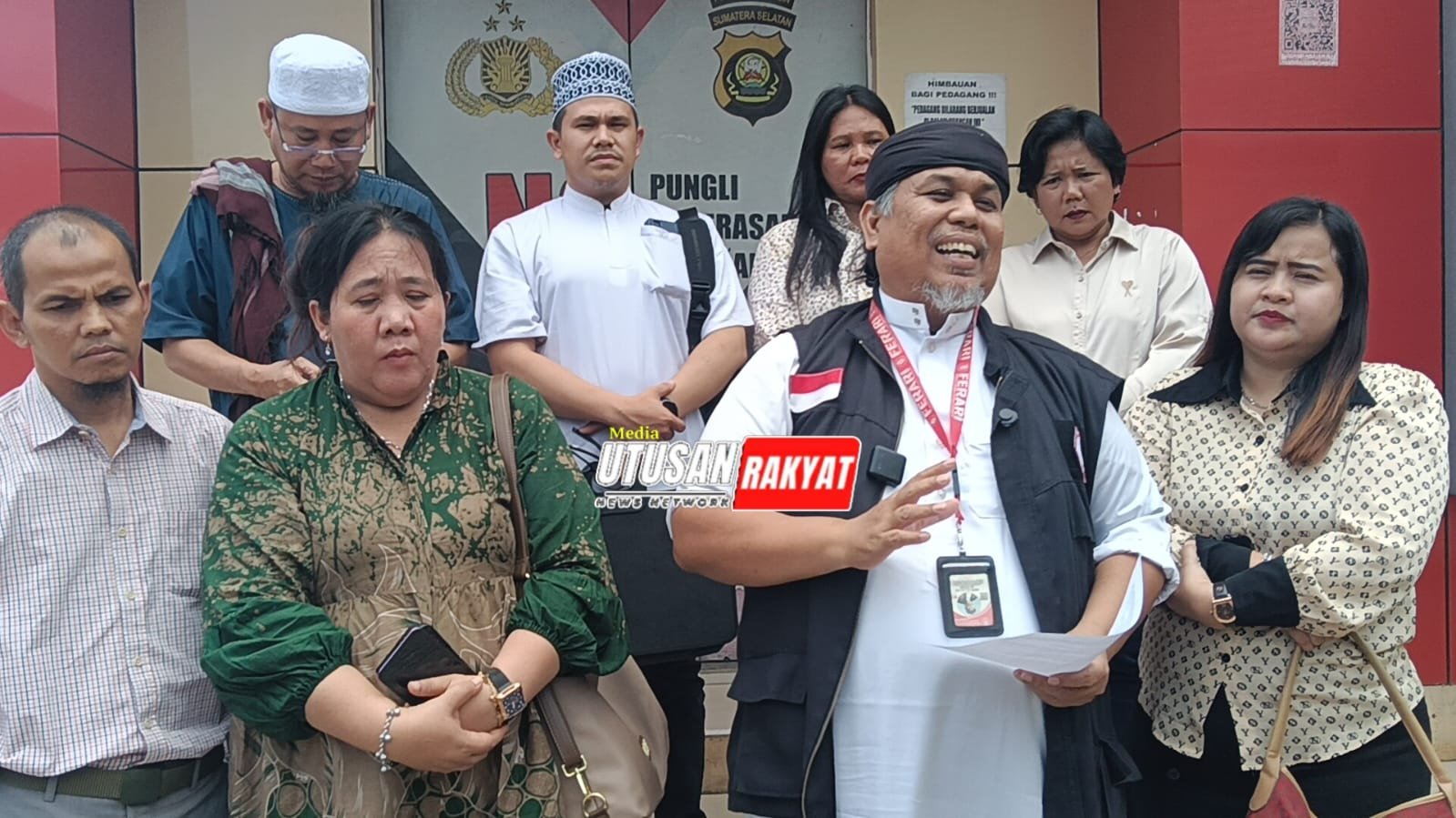 Gambar: Kuasa hukum Anggota DPRD Banyuasin Agus Riyanto, Adv. Idasril Firdaus Tanjung beserta tim, memberikan keterangan pers di depan gedung kepolisian (Polda Sumatera Selatan) terkait dugaan kriminalisasi sengketa politik kliennya yang dialihkan ke ranah pidana umum.