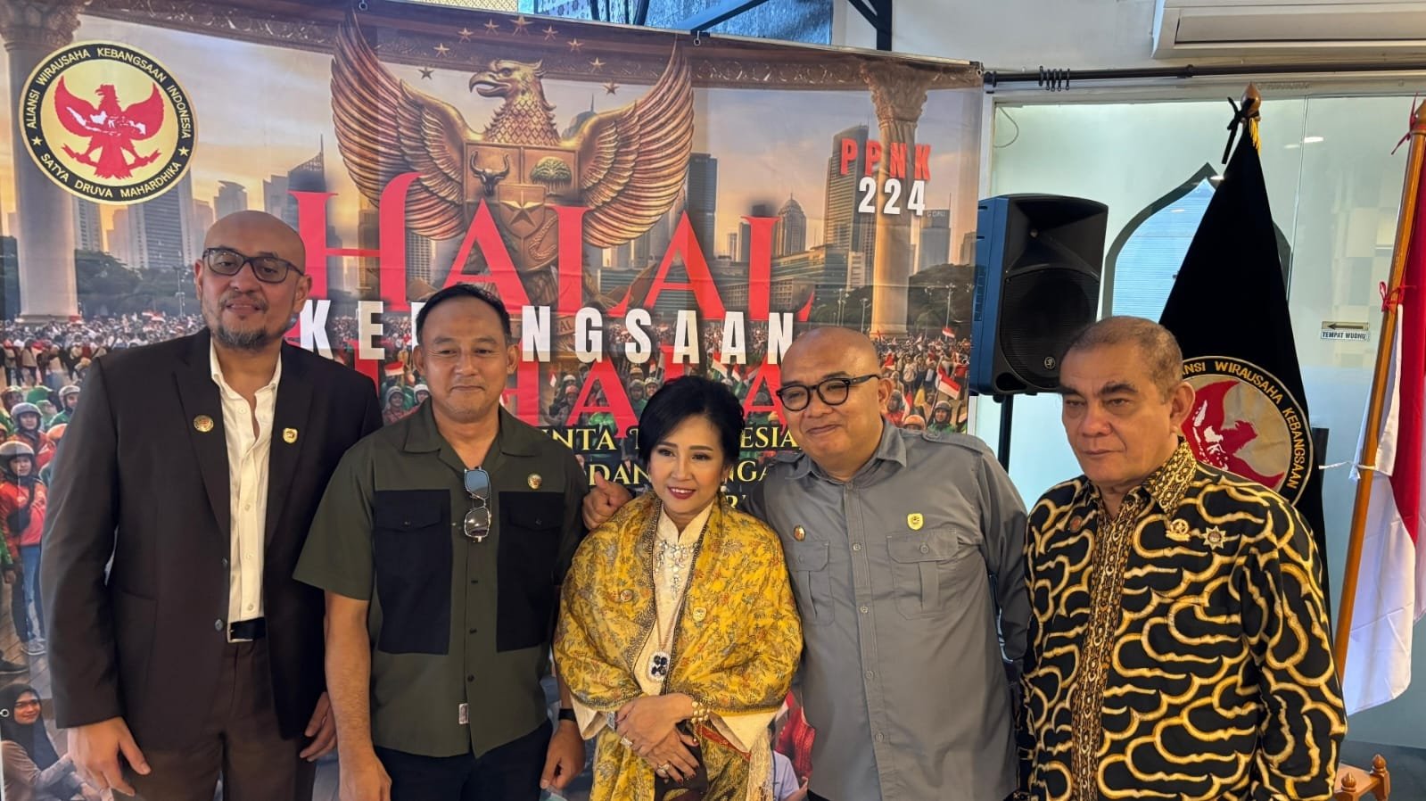 Gambar: Nyimas Choiriyah Halim (Cek Ria) tampak anggun di tengah jajaran pengurus AWKI dan alumni Lemhannas RI, mengenakan busana tradisional kebaya berwarna kuning keemasan yang mencerminkan semangat Kartini. Di latar belakang, terlihat baliho bertajuk “Halal Bihalal Kebangsaan” dengan lambang Garuda Pancasila, menegaskan komitmen seluruh pihak dalam foto tersebut terhadap persatuan dan kemajuan Indonesia Maju.