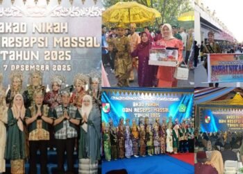 Read moreDetailsGambar: Rangkaian foto menampilkan suasana prosesi dan puncak acara Akad Nikah dan Resepsi Massal Tahun 2025 di Pekanbaru, mulai dari ...