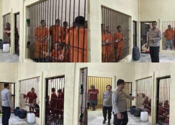 Read moreDetailsGambar: Foto memperlihatkan Kapolres Kampar beserta jajaran petugas kepolisian sedang melakukan inspeksi langsung di area ruang tahanan, berdialog dengan para ...