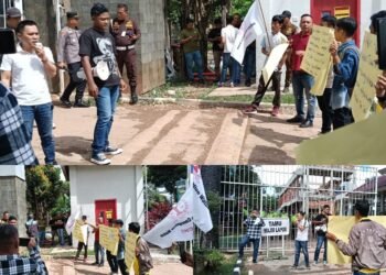 Gambar: Koalisi LSM Sriwijaya Corruption Watch (SCW) dan CACA Sumatera Selatan menggelar aksi damai di depan Kantor Kejaksaan Tinggi (Kejati) ...