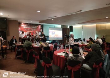 Read moreDetailsGambar: Suasana Musyawarah Kota (Muskot) V PSMTI Dumai yang berlangsung di Hotel Grand Zuri pada Minggu, 28 Desember 2025. Foto ...