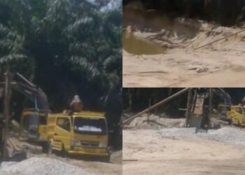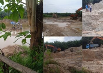 Read moreDetailsGambar: Kolase foto ini menunjukkan aktivitas penambangan galian C ilegal di Desa Kualu, Kampar. Terlihat alat berat jenis ekskavator mengeruk ...