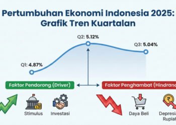 Gambar: Ilustrasi grafik tren pertumbuhan ekonomi Indonesia sepanjang 2025 menunjukkan lintasan naik turun dari kuartal pertama (4,87%) ke kuartal kedua ...