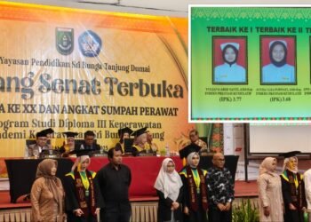 Gambar: Suasana khidmat Sidang Senat Terbuka Wisuda ke-XX Akademi Keperawatan Sri Bunga Tanjung Dumai di Ballroom Hotel Grand Zuri. Tampak ...