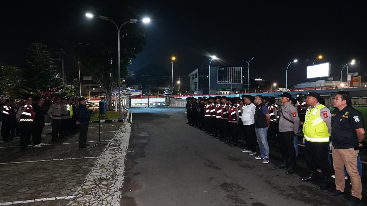 Gambar: Sejumlah personel kepolisian dari berbagai satuan mengikuti apel malam persiapan patroli dan razia dalam rangka pelaksanaan Operasi Pekat Musi 2026 di wilayah hukum Polda Sumsel.