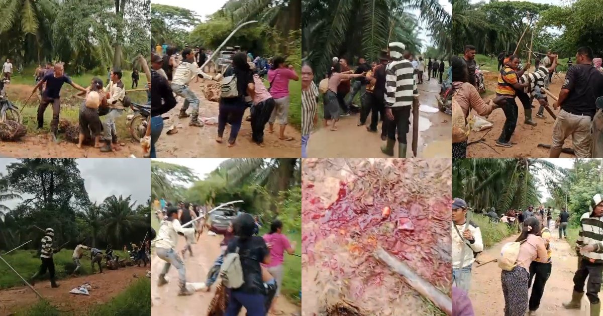 Sementara itu, di media sosial beredar sejumlah video dan foto yang memperlihatkan situasi pasca-bentrokan. Terlihat sejumlah orang, termasuk ibu-ibu, terlibat perkelahian. Berbagai alat tajam, seperti egrek kelapa sawit, digunakan dalam bentrokan tersebut.