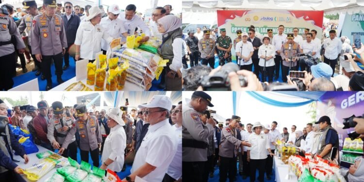 Gambar: Kapolri Jenderal Polisi Listyo Sigit Prabowo didampingi sejumlah pejabat meninjau stan Gerakan Pangan Murah pada acara Panen Raya Jagung Serentak Kuartal III 2025 di Kabupaten Ogan Komering Ulu (OKU) Timur. Kegiatan ini merupakan bagian dari upaya Polri untuk menjaga stabilitas harga dan ketersediaan bahan pokok bagi masyarakat melalui penyaluran paket sembako murah.