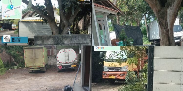Gambar: Aktivitas sejumlah kendaraan logistik, termasuk truk tangki dan truk boks, yang terparkir di sebuah area lahan tertutup di kawasan Kramatwatu, Kabupaten Serang. Lokasi ini diduga menjadi tempat penampungan dan penimbunan BBM jenis solar bersubsidi yang kembali beroperasi meski sempat dilaporkan ke pihak berwajib.