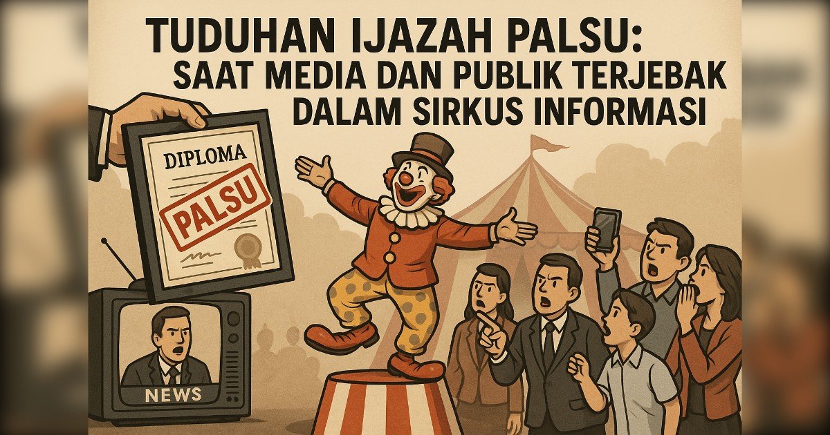 Jakarta (Utusan Rakyat) – Tuduhan ijazah palsu kembali menjadi perbincangan hangat di Indonesia. Meski hukum jelas menegaskan bahwa pihak yang menuduh wajib membuktikan klaimnya, kontroversi ini justru dipelintir menjadi tontonan publik oleh media dan komentator. Alih-alih mencari kejelasan, topik ini diputar ulang berulang kali untuk menciptakan keramaian semu yang lebih banyak menghibur daripada memberikan solusi.